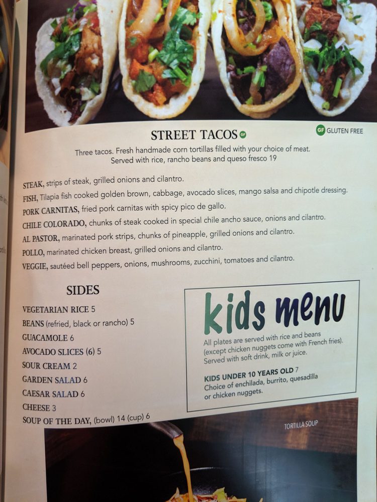 Rolled corn or flour tortillas filled with choice of meat, fried, and garnished with lettuce, cheese, tomatoes, onions, olives, guacamole and sour cream.